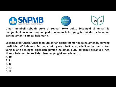 Sesampai di rumah Umar menjumlahkan nomor-nomor pada halaman buku yang terdiri dari 40 halaman. Ternyata buku yang dibeli cacat, ada 3 lembar berurutan yang hilang sehingga diperoleh jumlah halaman buku tersebut sebanyak 739. Nomor halaman terkecil dari lembar yang hilang adalah ....